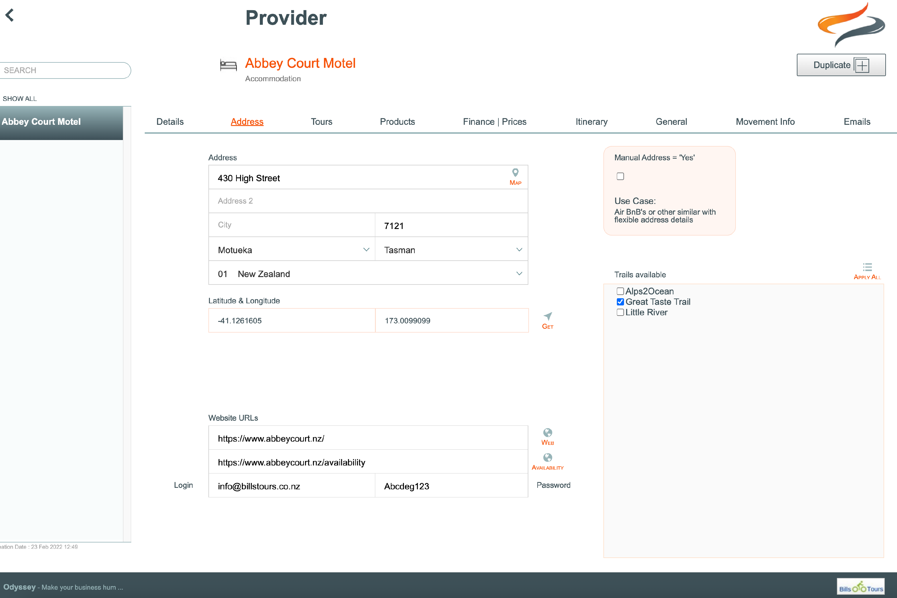 Tick the box beside favourite if this Provider is a well used and enjoyed provider. (This doesn't treat the provider any differently within Odyssey, it is just a 'tag' for your reference. The Provider list can be sorted by favourites, to make them easier to find.)