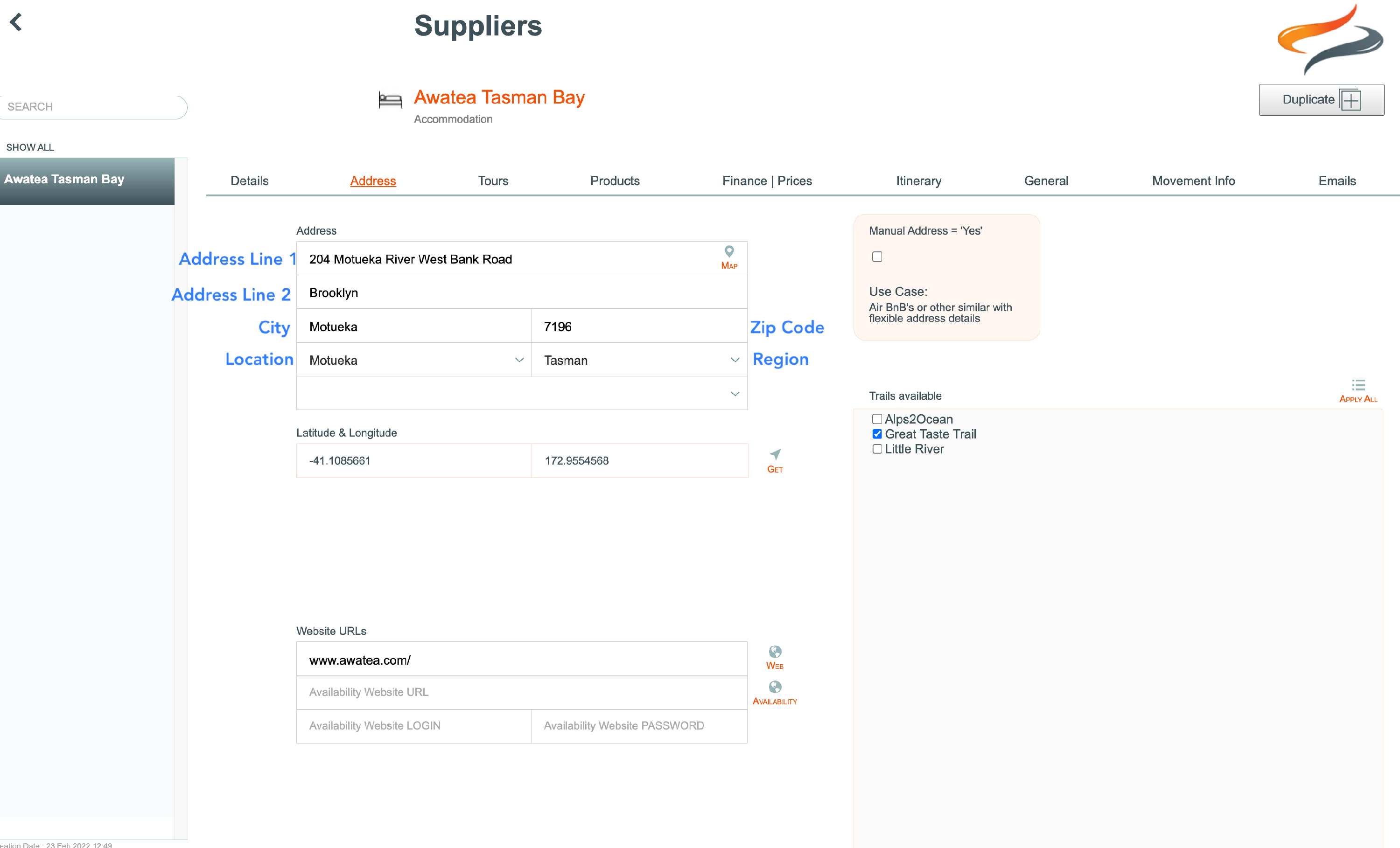 - It's important to include the town on Address Line 2, as that gets printed on the itinerary