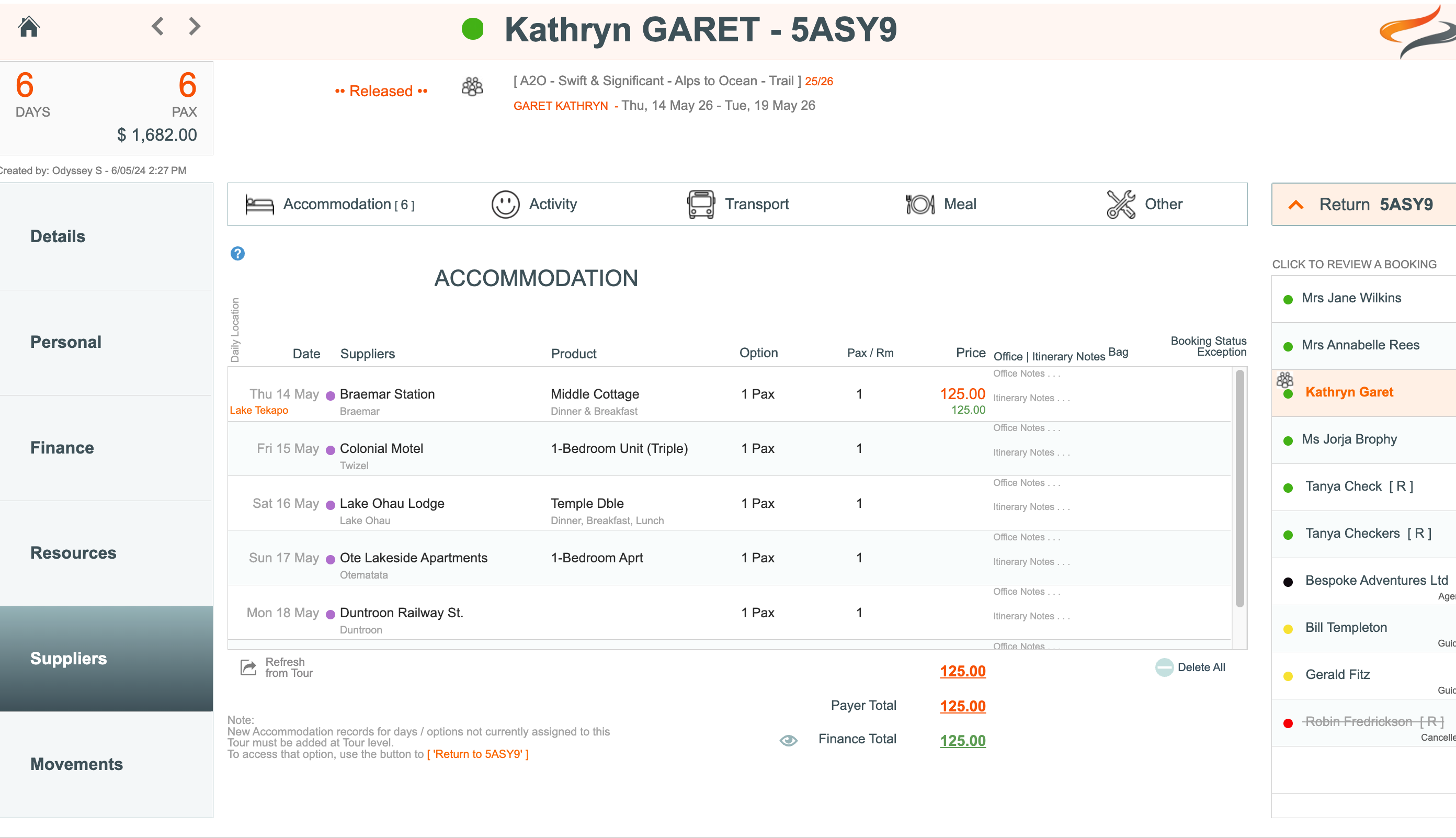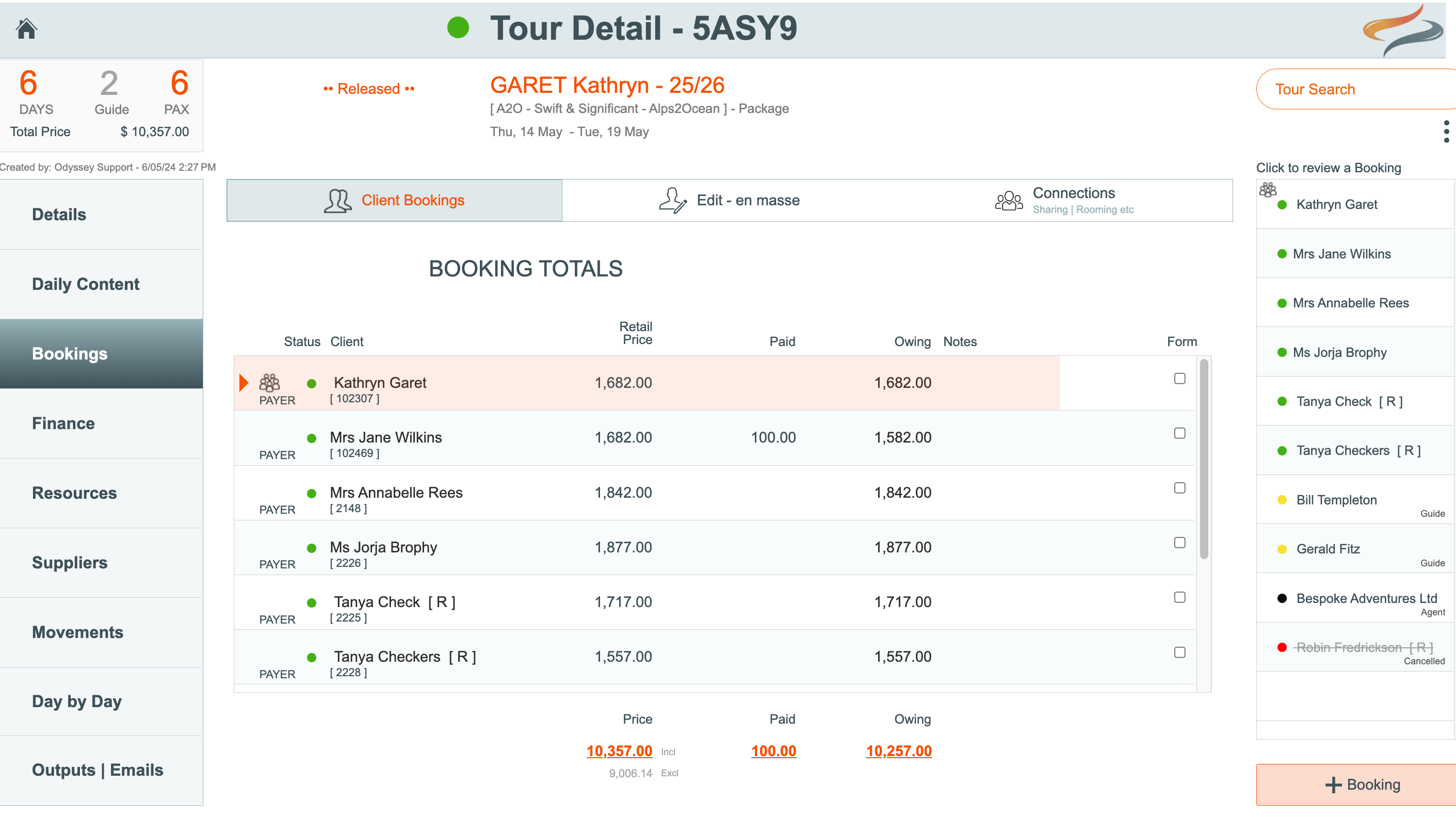 - From the Tour | Bookings tab, navigate to the client whose Provider costs you wish to review