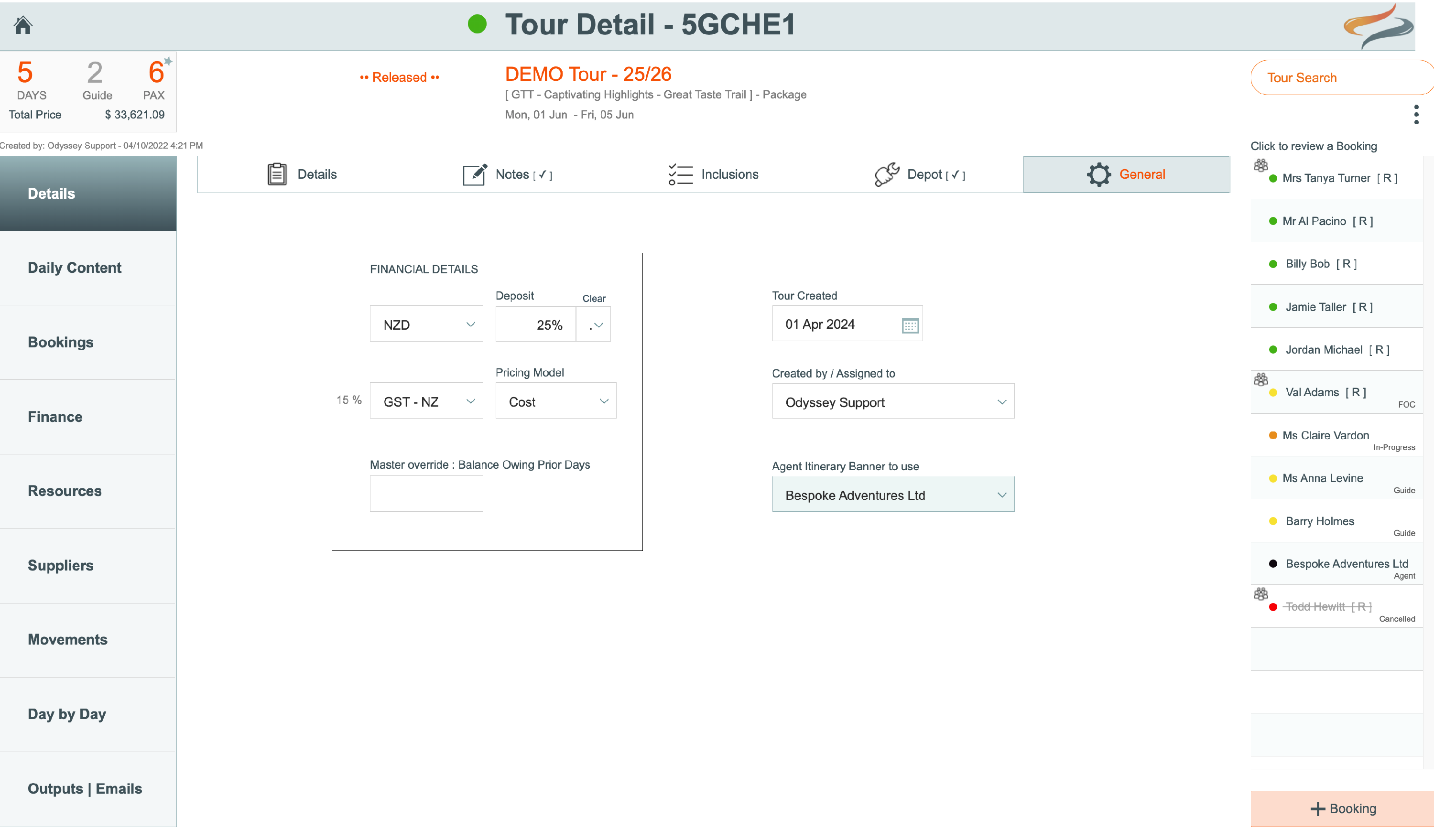 The 'Trip Master' contains all of the default settings/selections that can be re-used on Departures, and the details can be edited here at Departure level.