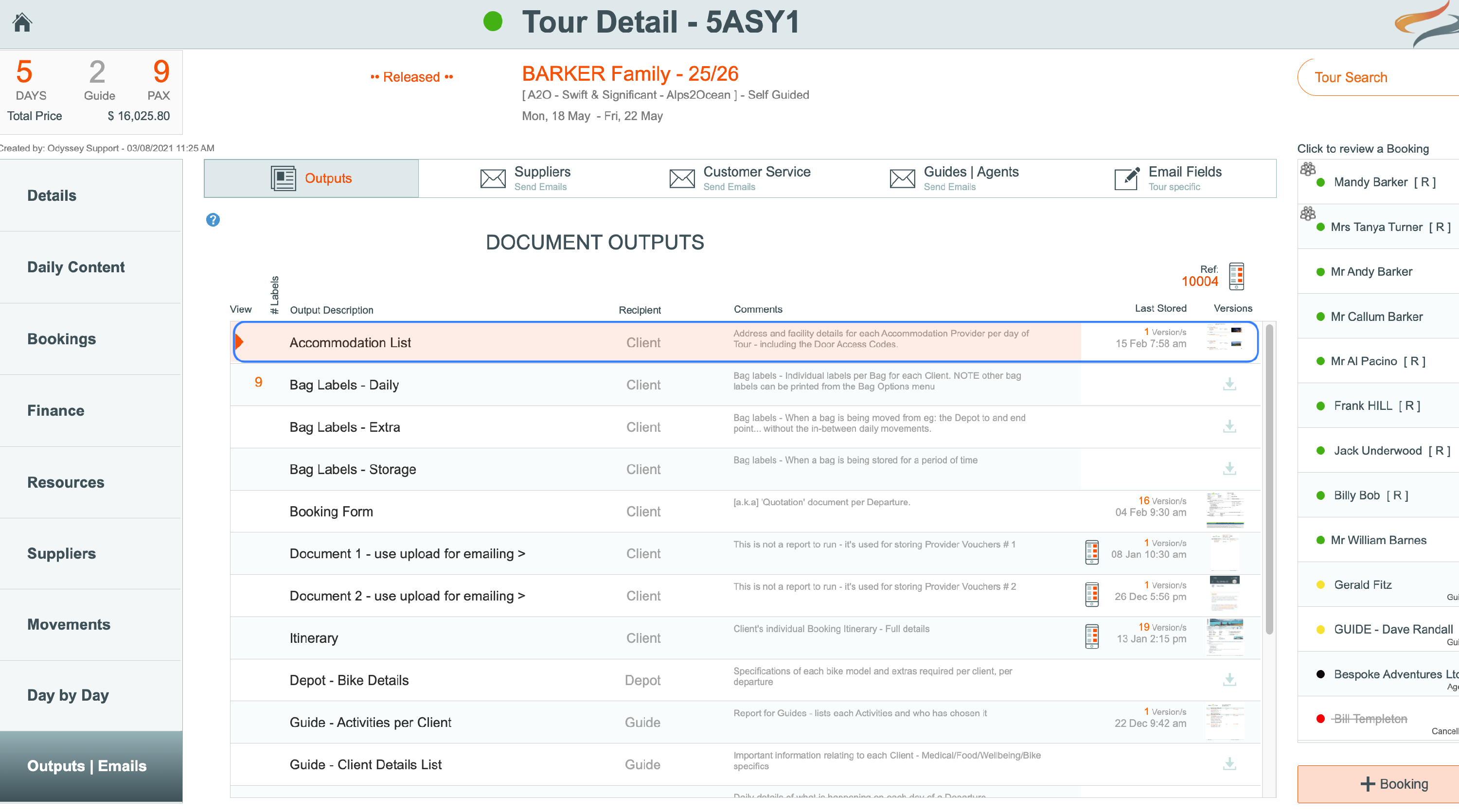 - print the outputs (eg bag labels, guide list) or in the case of the Itinerary, push it to the mobile app