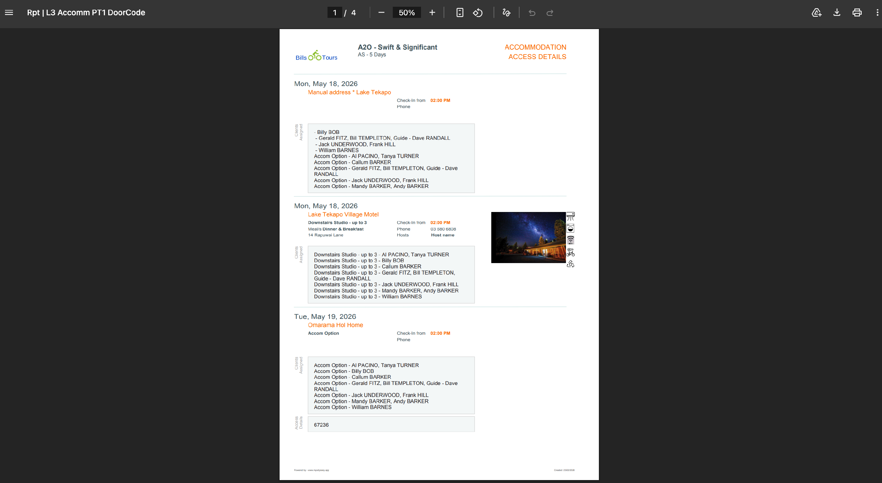 - A initial PRE-preview of the document (in this case, an accommodation list) will appear next: