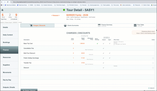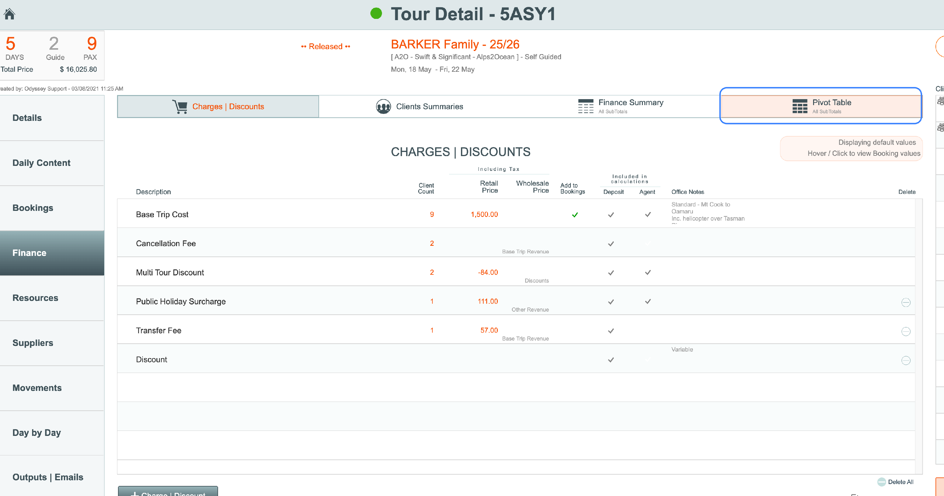 - Where base trip costs include accommodation and movements etc, then the breakdown of those charges is shown on the finance view of the finance layout