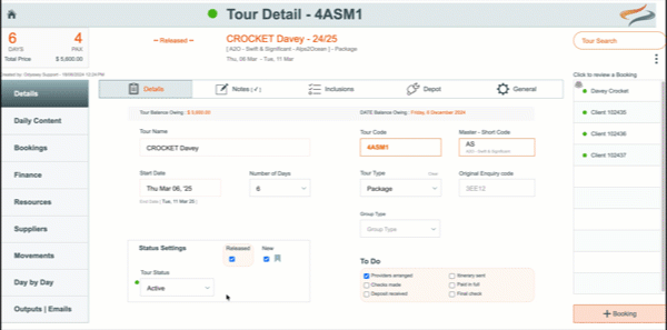 - From the Departure | Details | Details tab, choose Cancelled from the Departure/Tour Status drop down list.