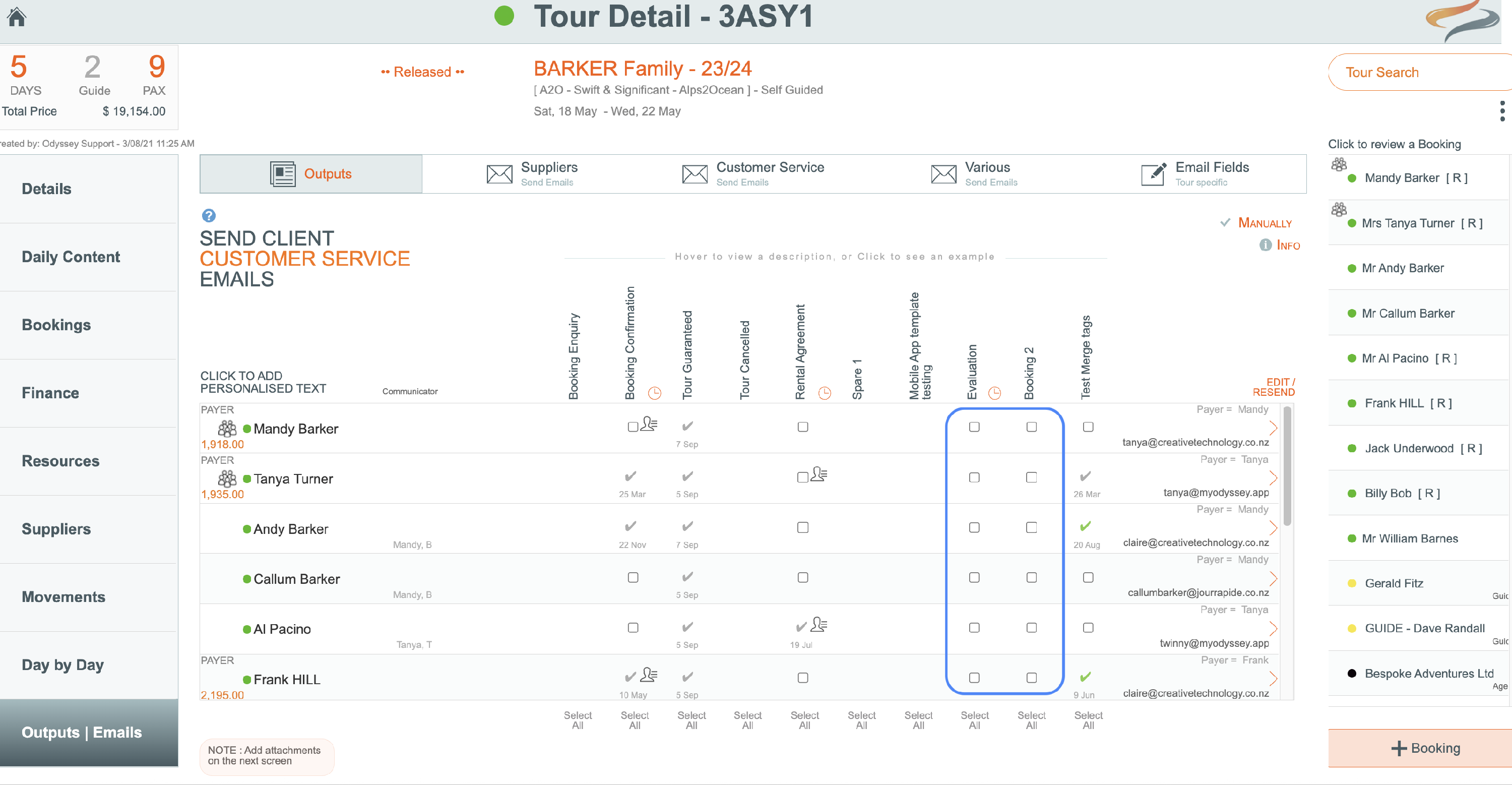 Odyssey is very particular about when to show the Tick boxes to enable the sending of emails. This is is to ensure the integrity of the emailing process.