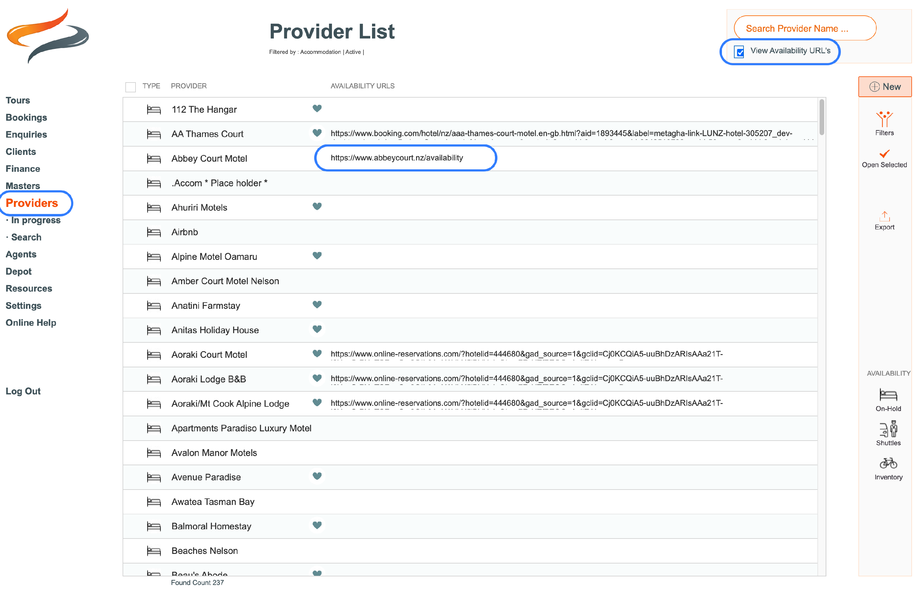 - Beside each provider name, enter the URL you wish to use to check booking availability.