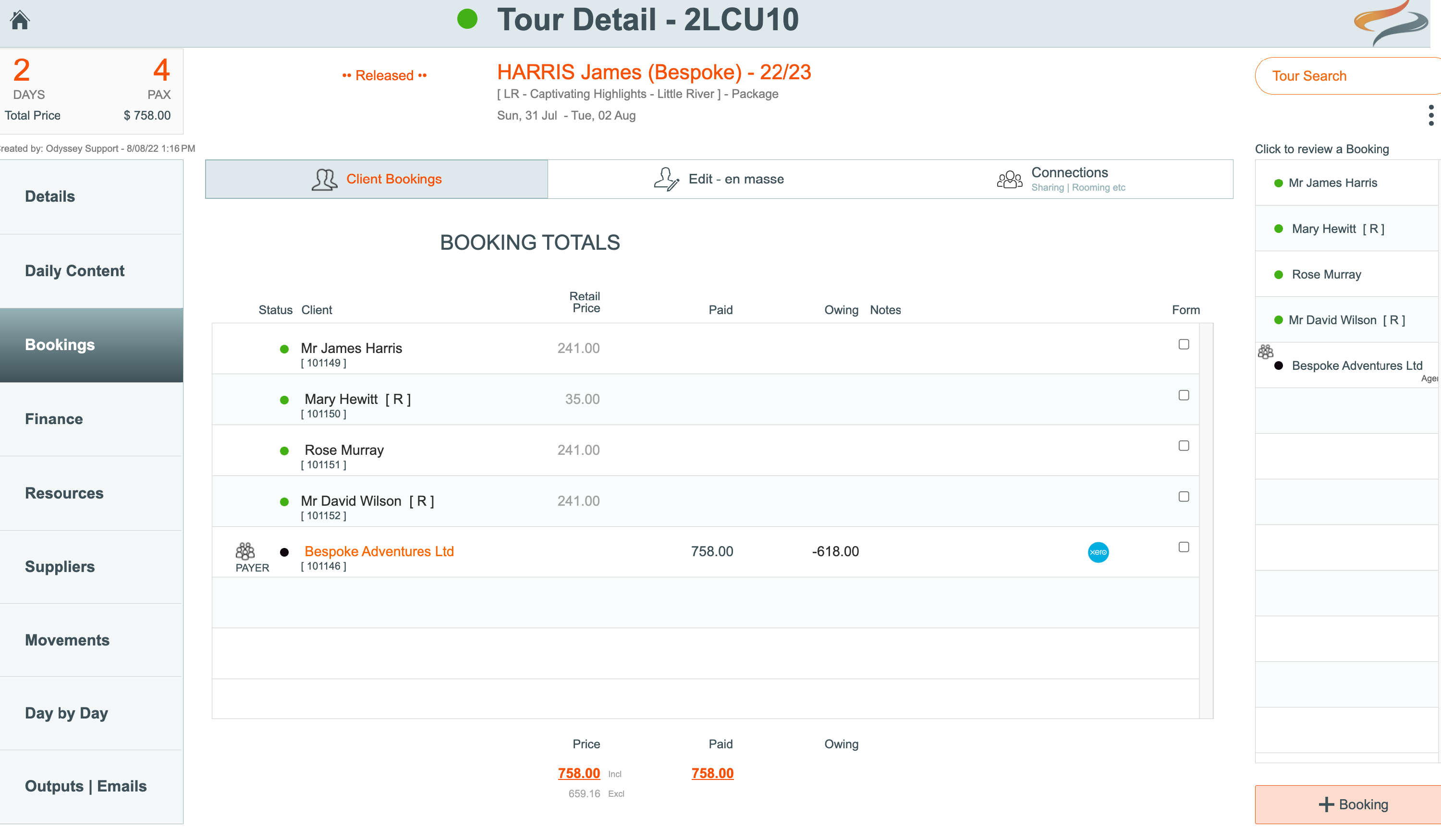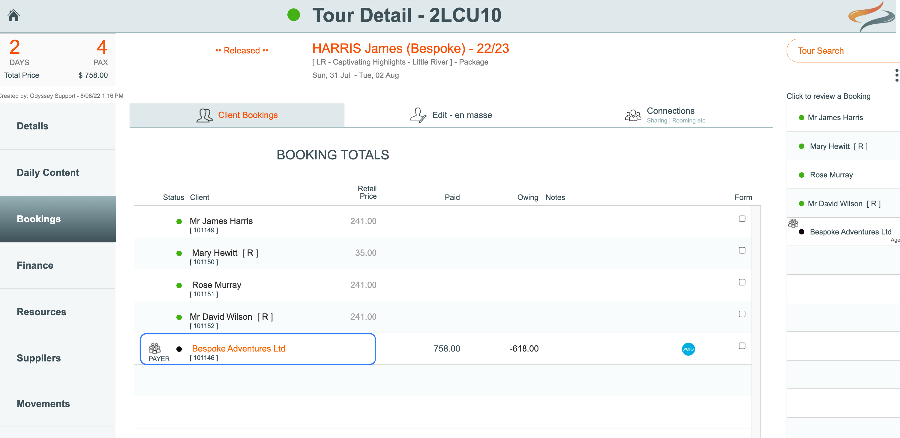 In this case, all the billing and communications will go directly to the other tour operator, and not to the individual client. This method described below, will PUSH the TOTAL value for all the combined Payer values to the one "Bespoke Adventures" client, and then that all goes to the ONE client record in Xero. So their Xero single client has all of the bills to pay.