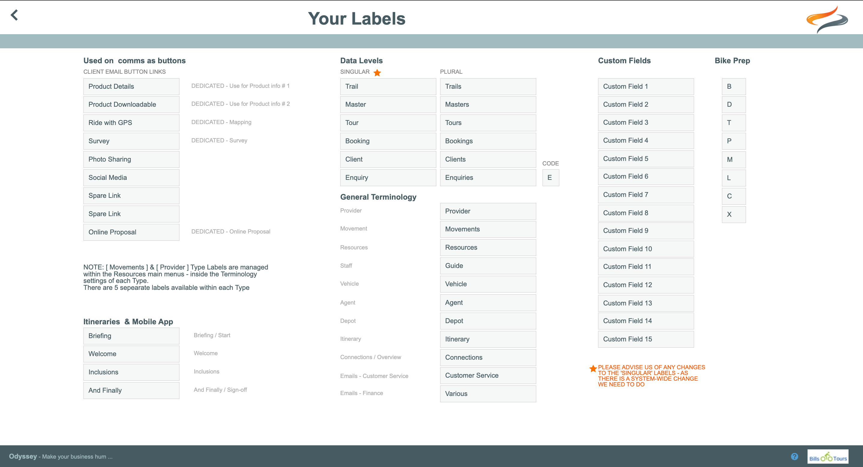 - Email variety labels (Customer Service and Finance labels are now customisable e.g. if you don't use Finance emails, you could label these Guides/Agents)