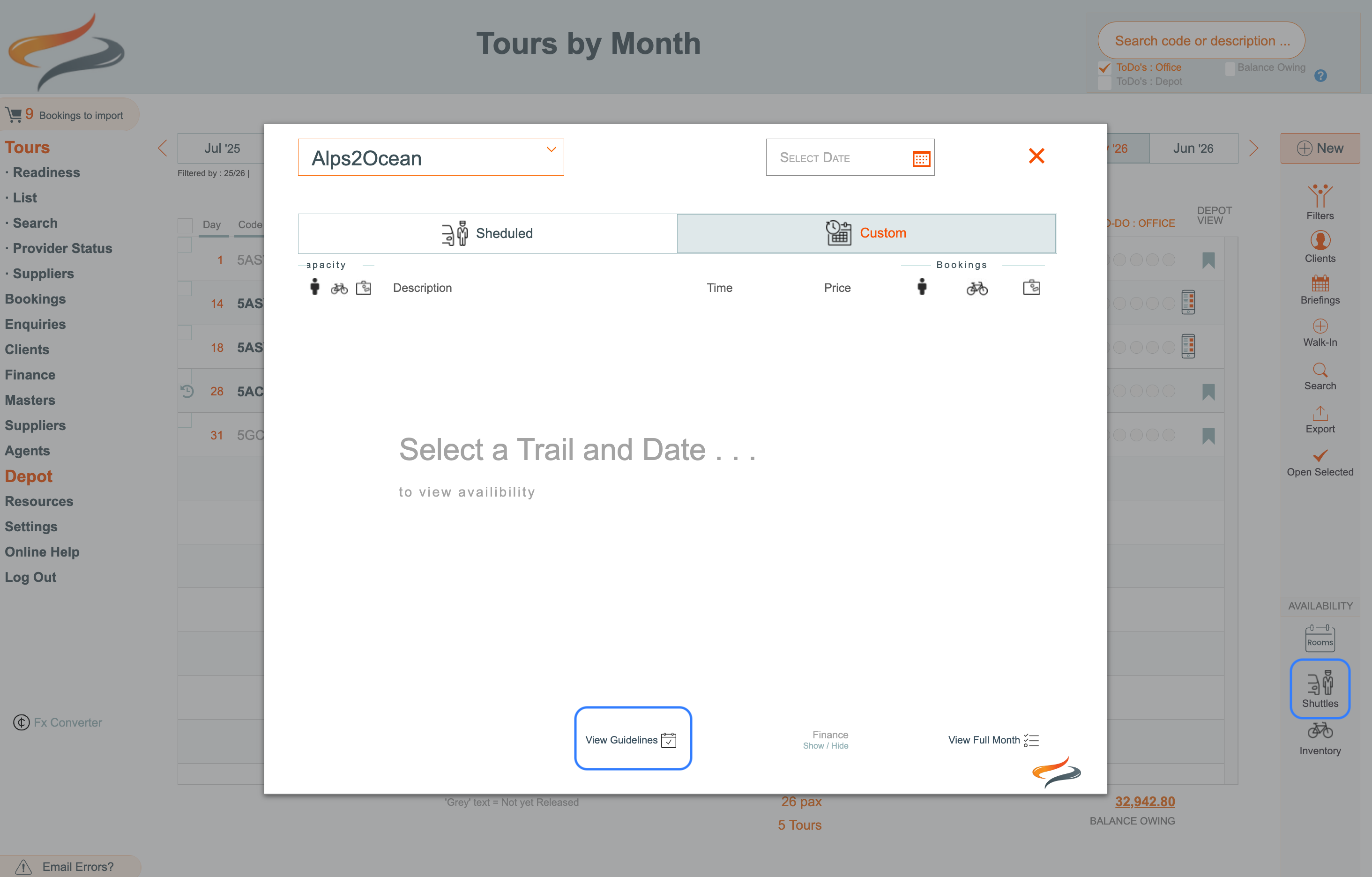 Depots are places at the beginning or end of trails where briefings are performed, bikes are released, returned to and maintained, shuttles are operated from, and counter sales taken. Not all Odyssey clients operate Depots, so some settings are required to manage Depot functionality in Odyssey.