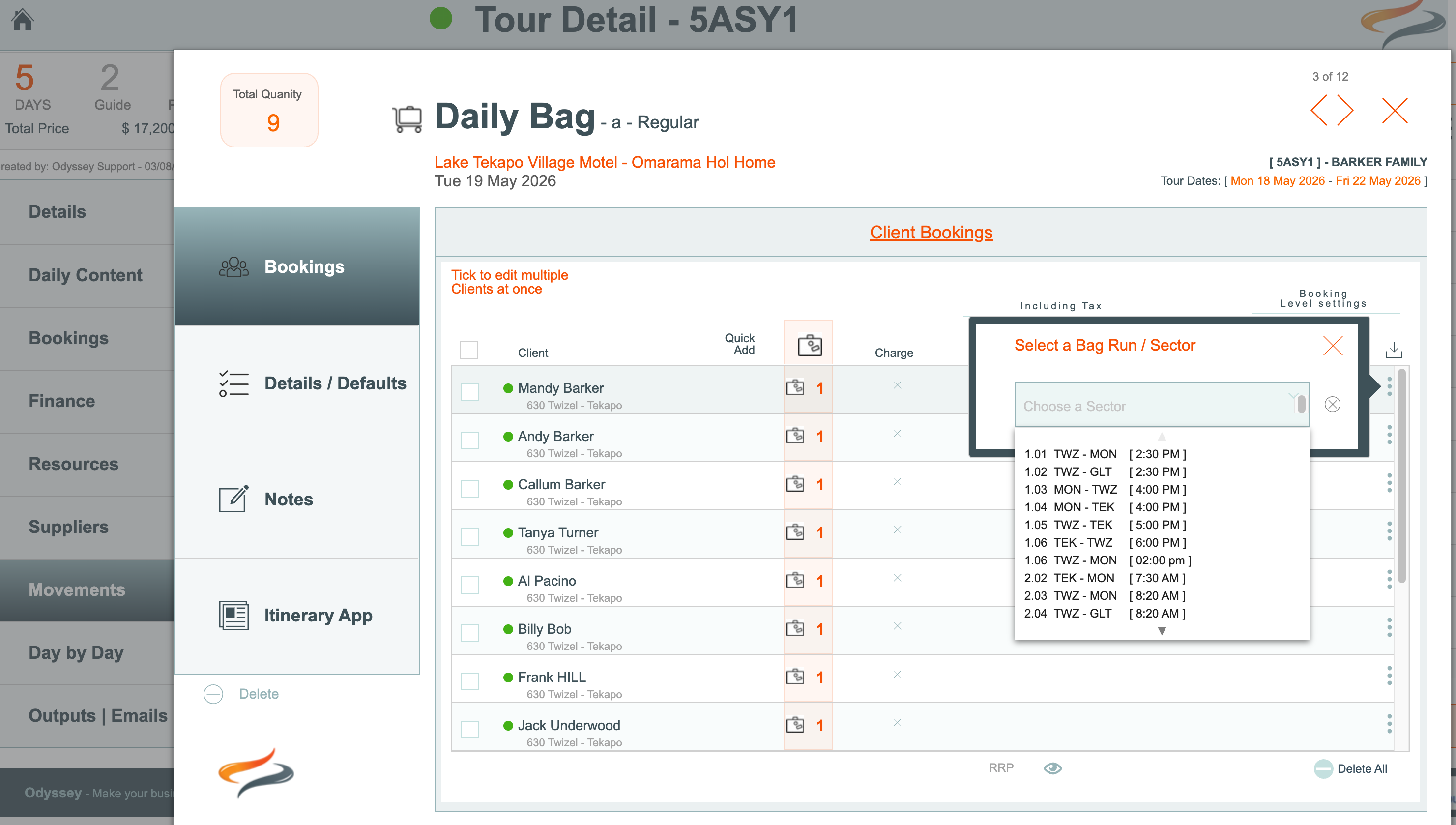 - Hide Bike - For Odyssey clients who don't offer cycle tours, or cycle hire, this hides the bike functionality from the Resources menu, Depot lite searches menu, Master, Tour and Booking level movements, Day by Day, Extras and Accessories view