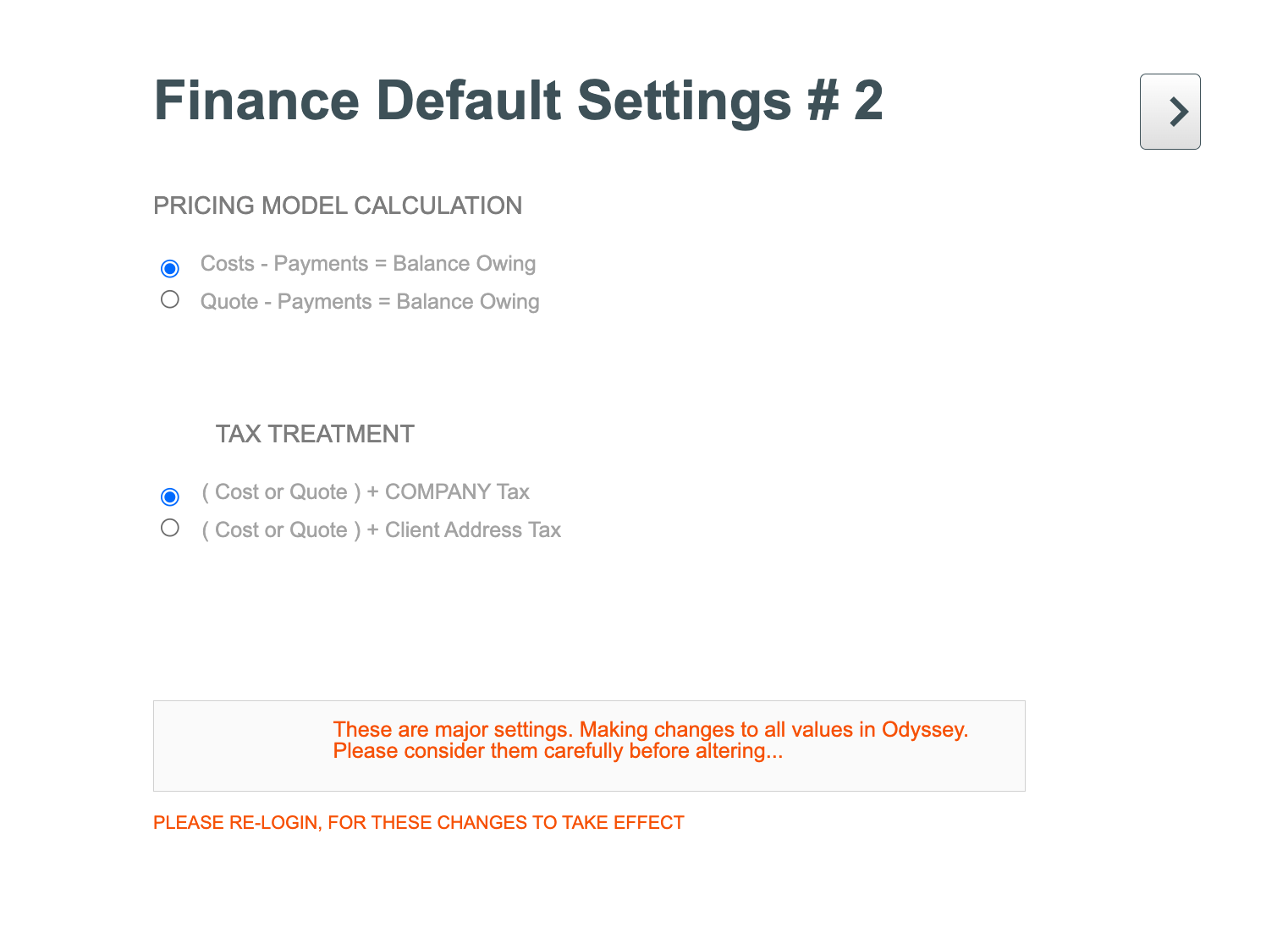 From the Main Menu, choose Admin | | Financial Settings | Finance Defaults