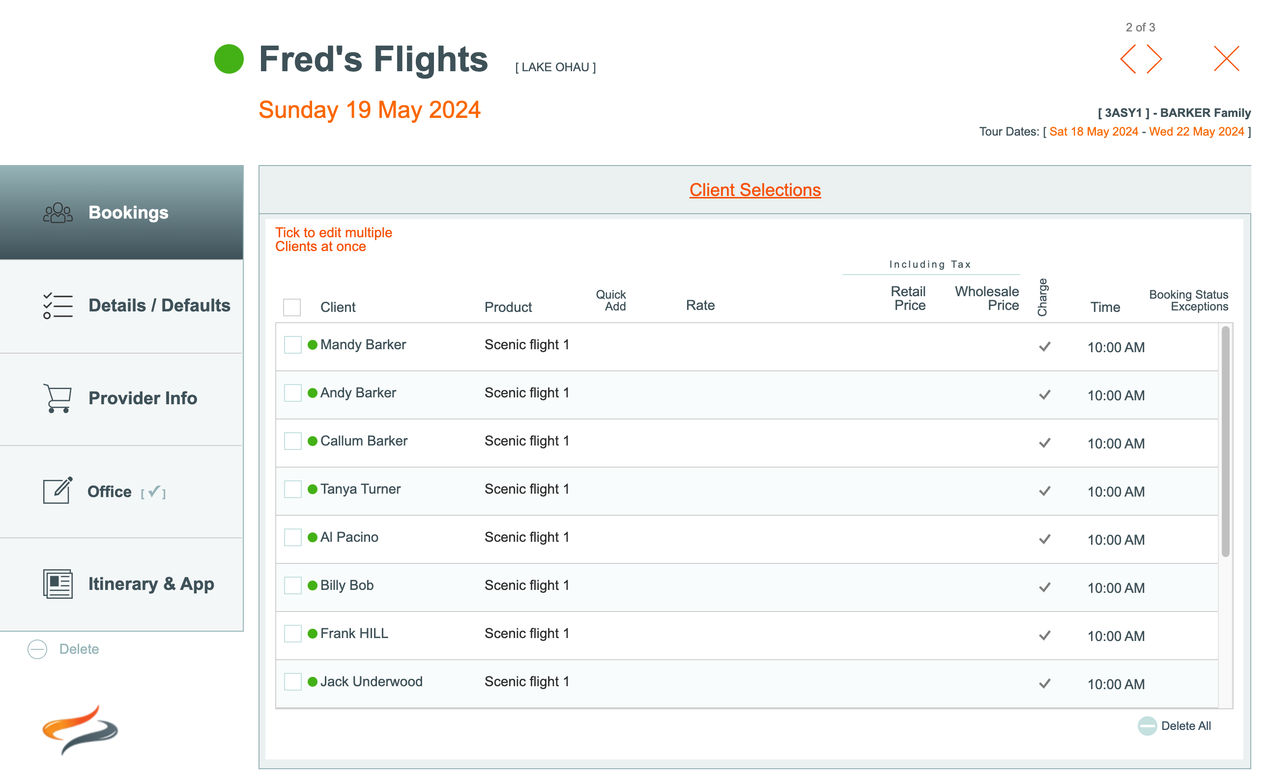 - If all bookings on the Tour need to be added to this provider there's an 'Add to All button'