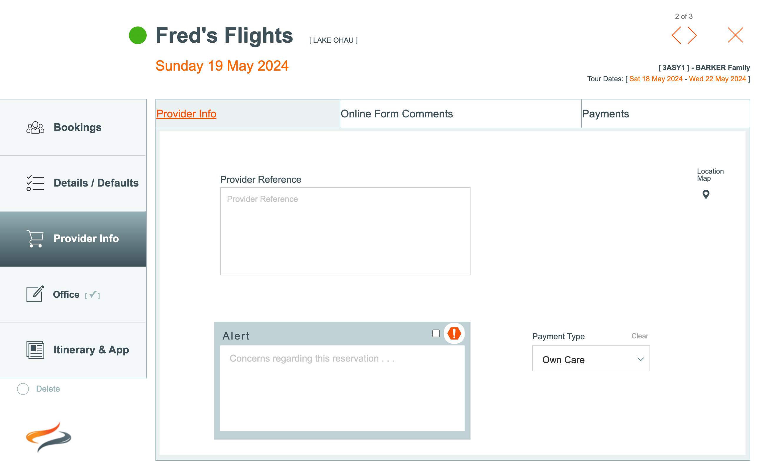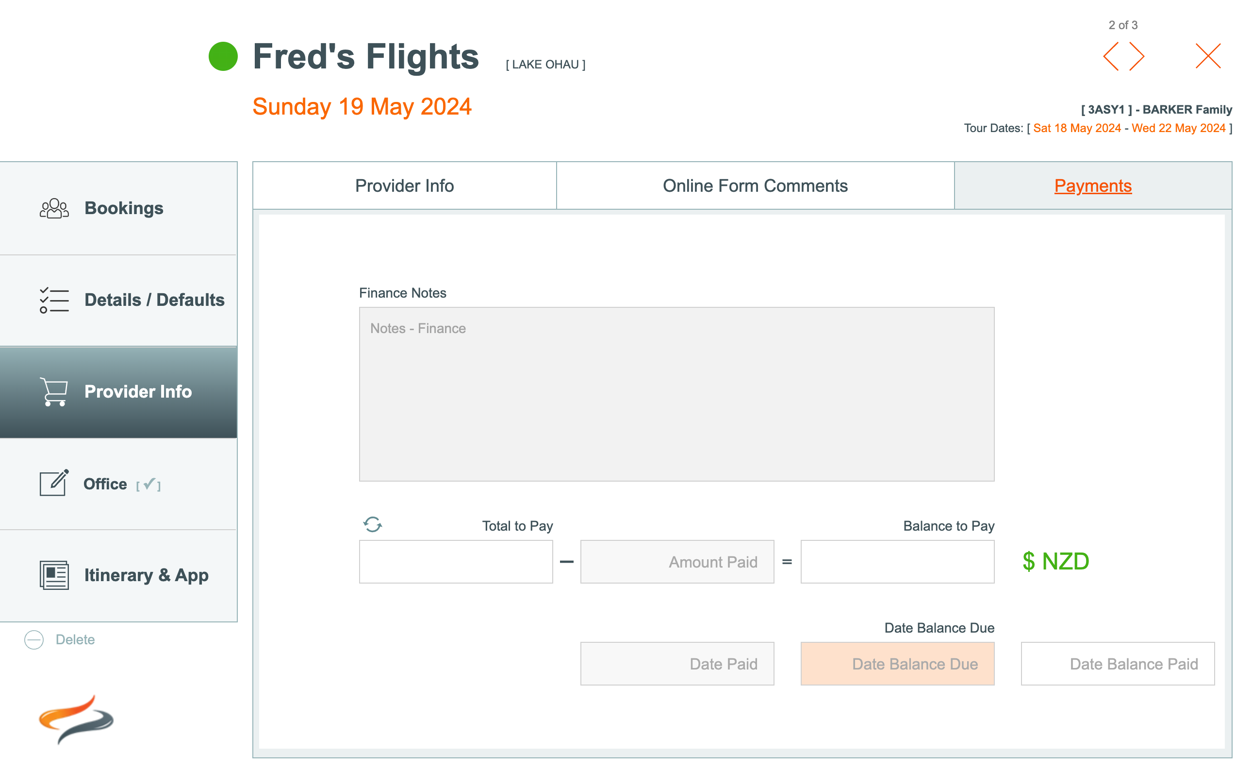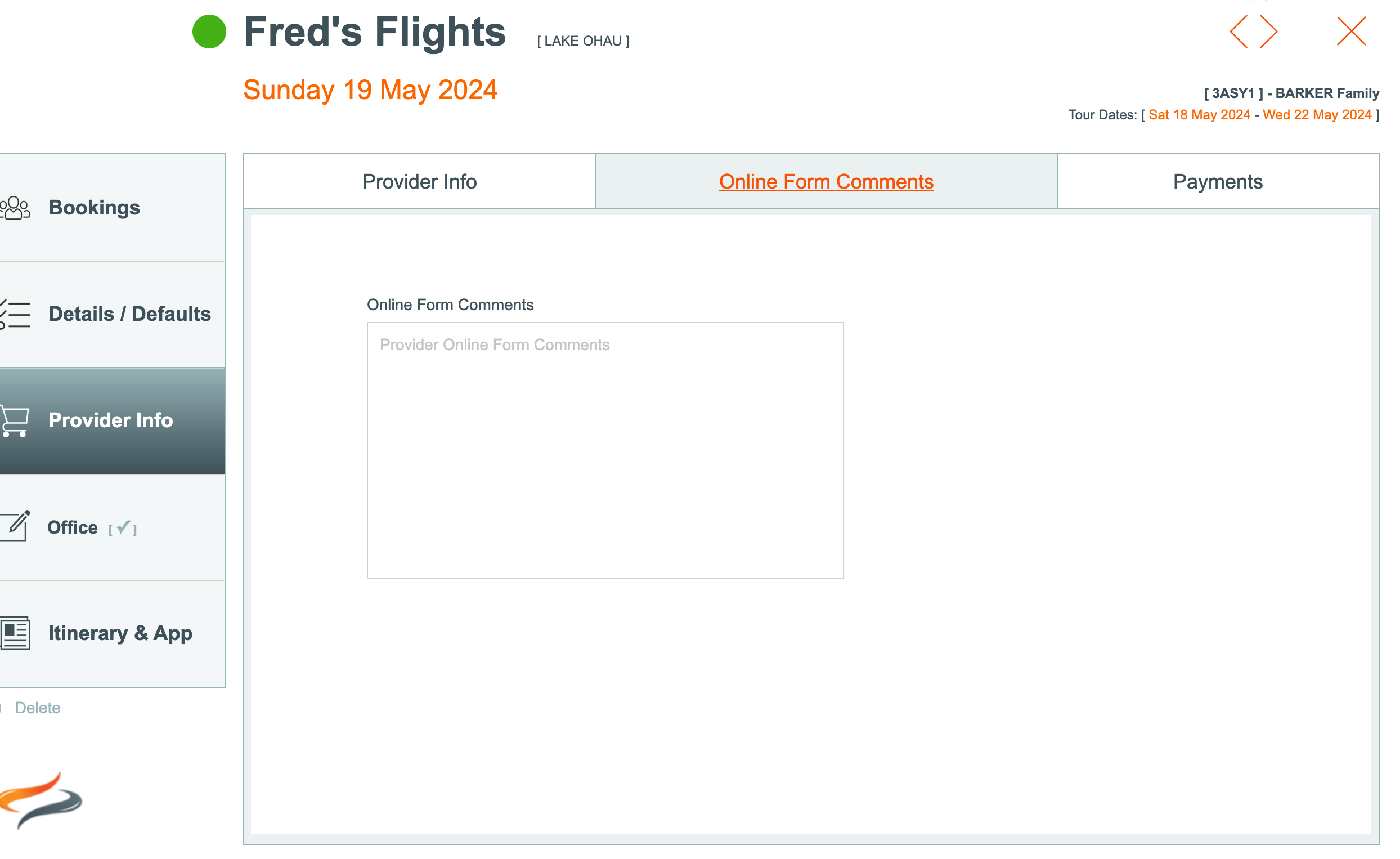 - Move to the Provider | Details tab , where you are able to manage details of the booking with this Provider