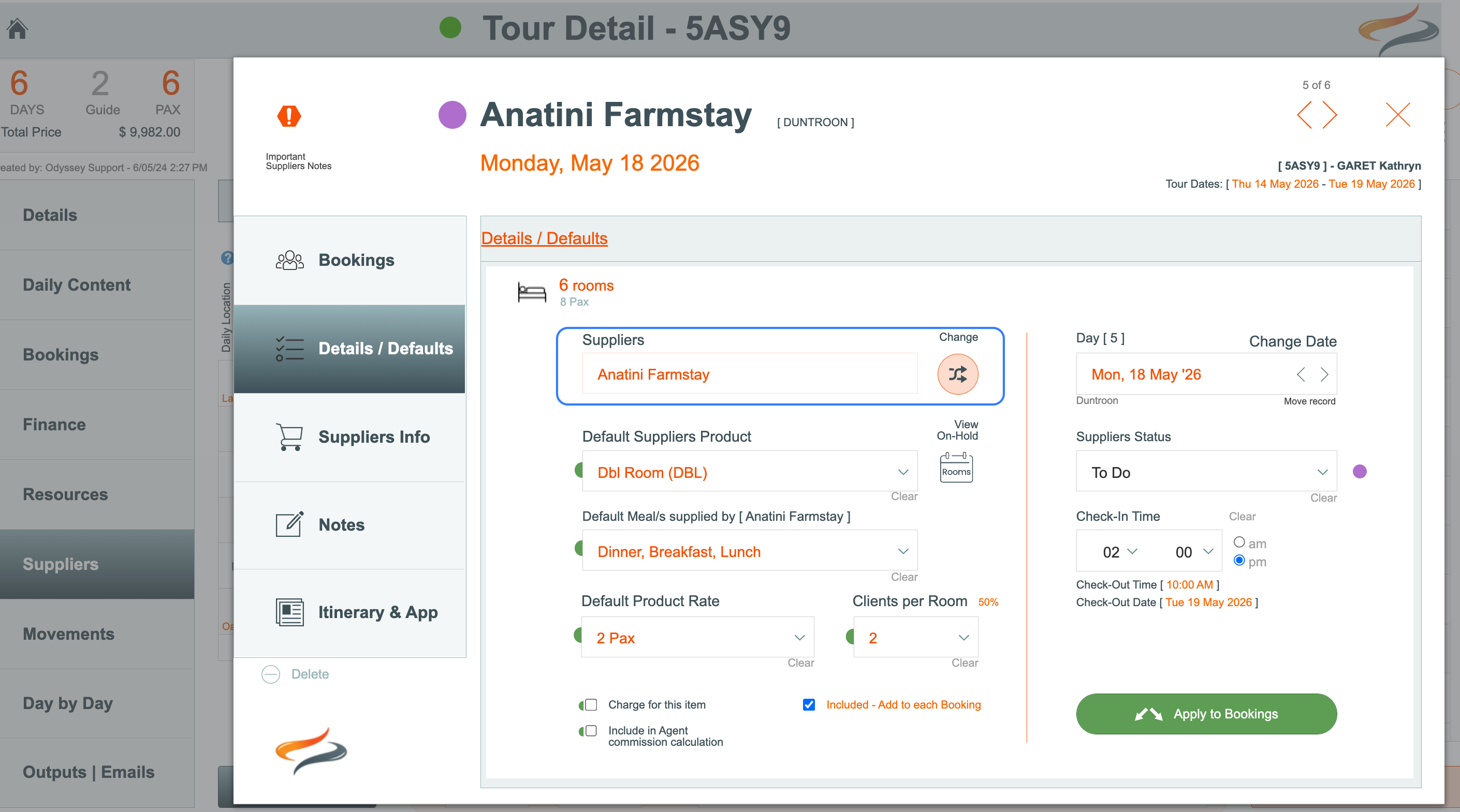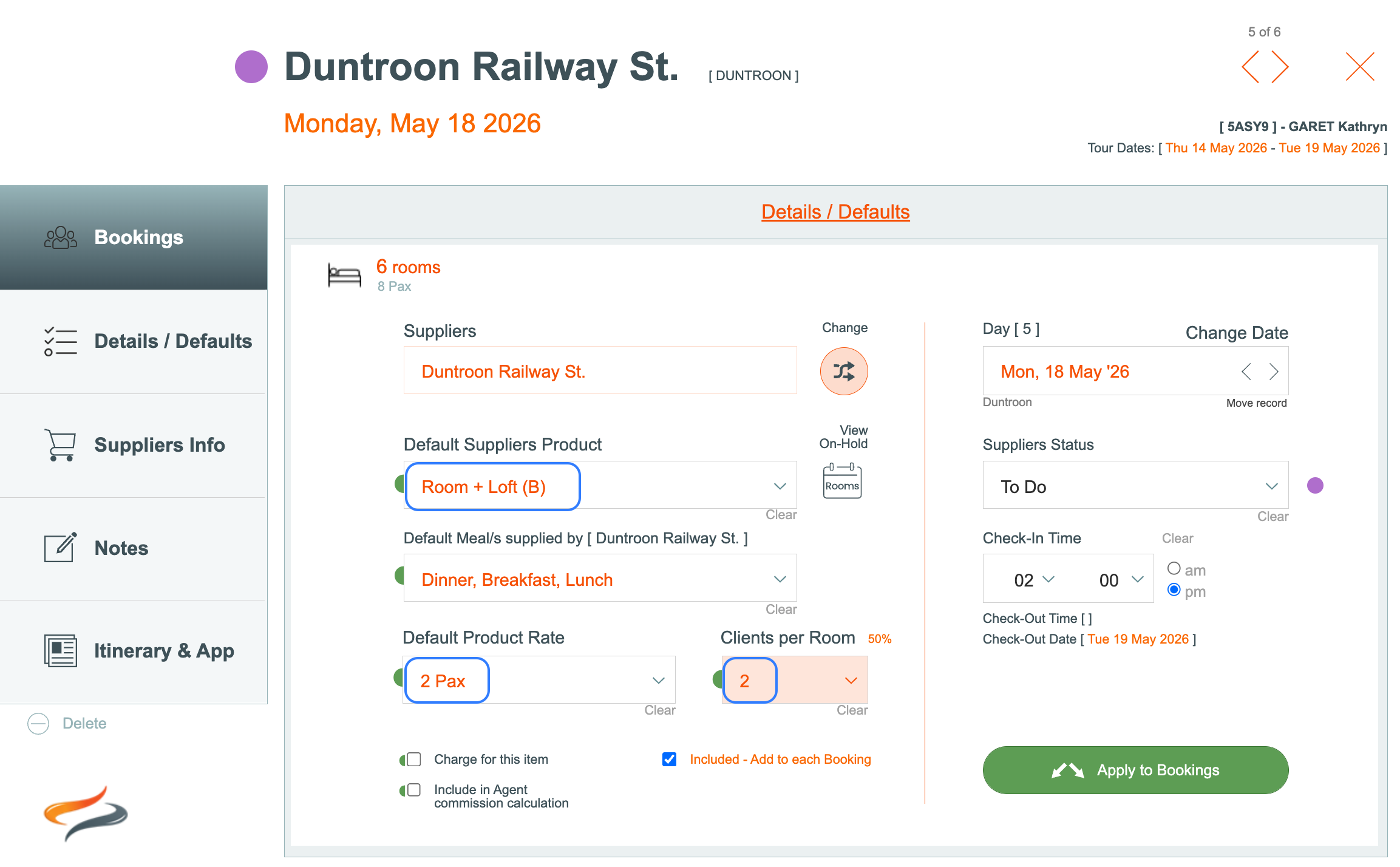 then click Apply to Bookings, if you wish these settings to be applied to existing client bookings on this tour.