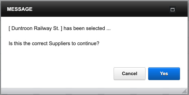 - You will be prompted to continue, if this is the correct supplier to be switched to. Click Yes