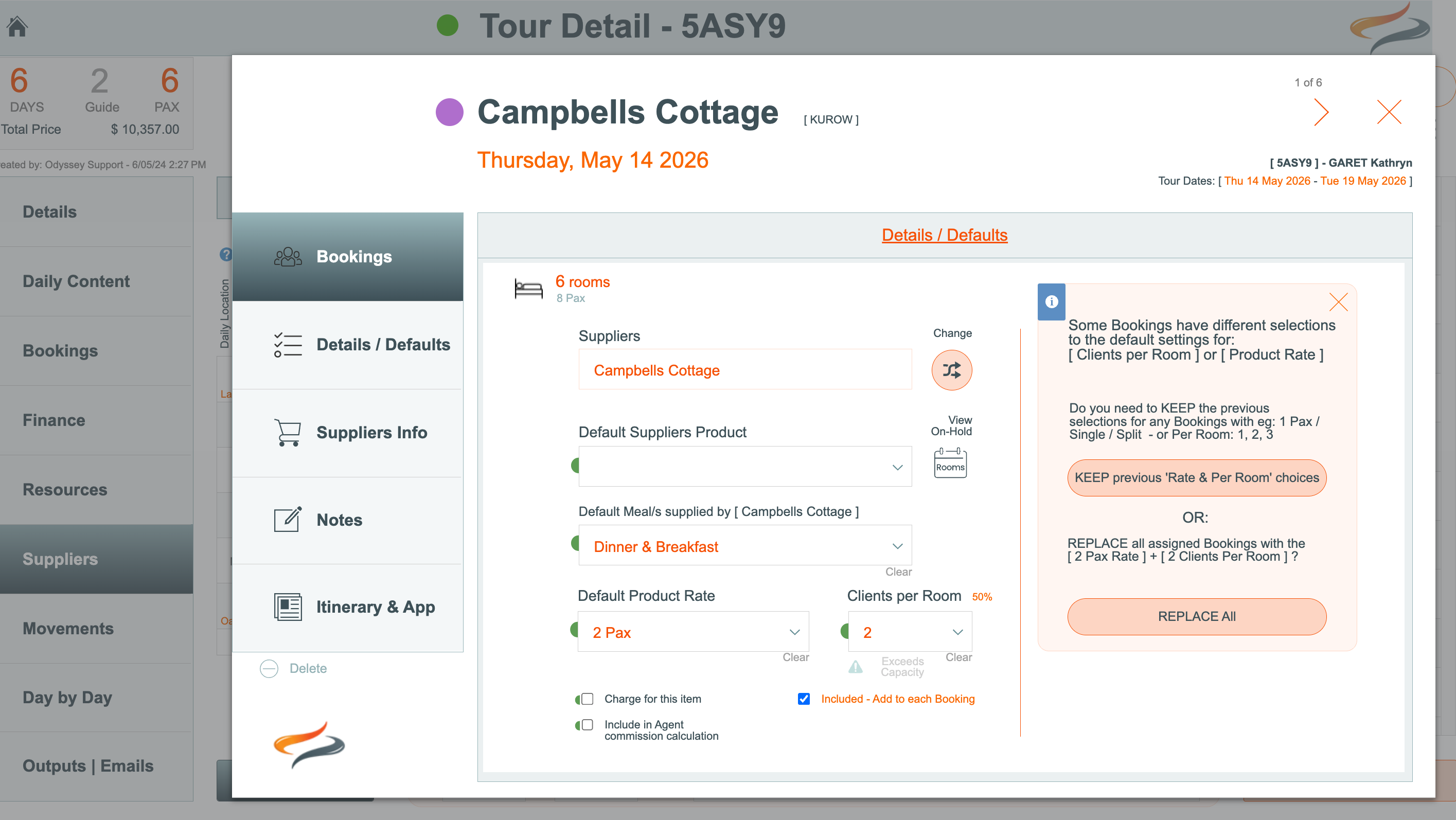 - Click REPLACE all if you wish all existing bookings with this provider to be updated with the new PAX per room