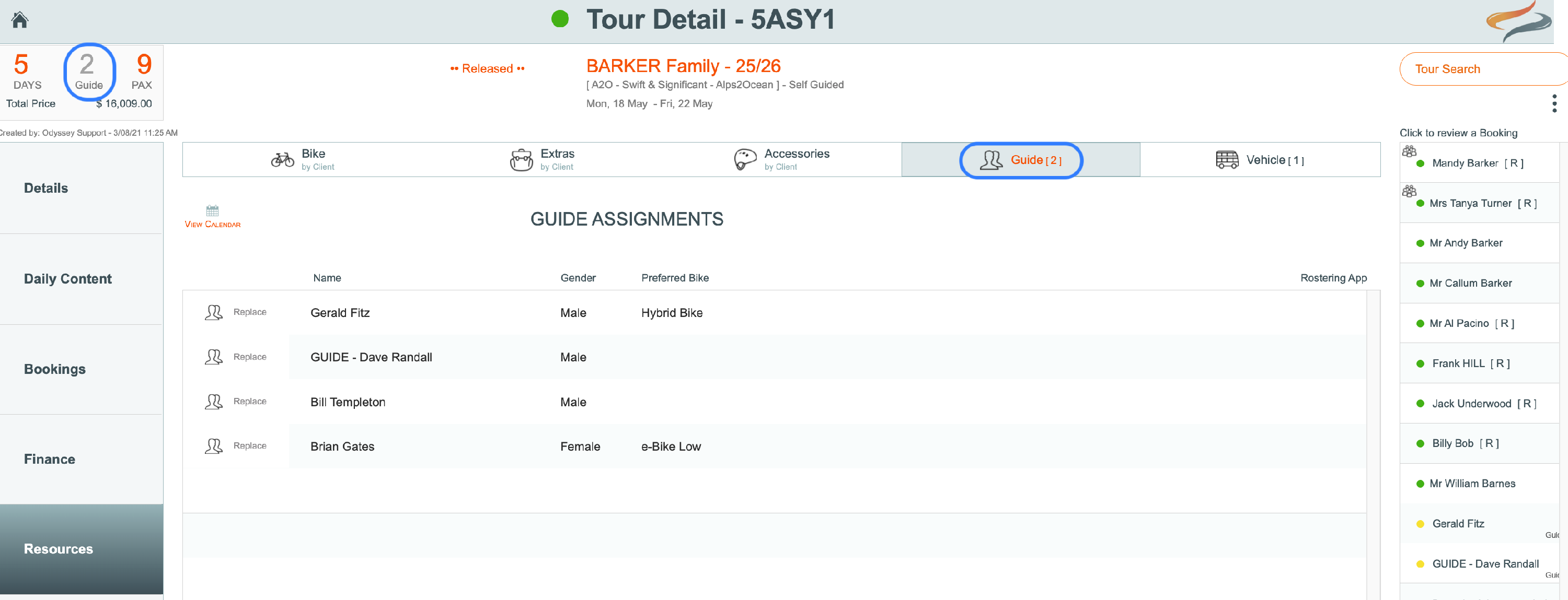 Go to the Tour | Booking list, and observe that these two Guides have automatically been added to the tour, as bookings.