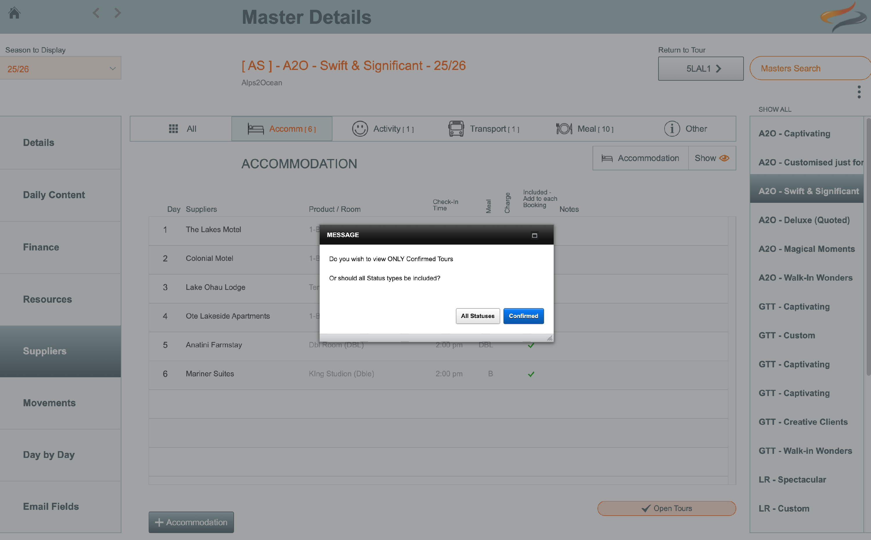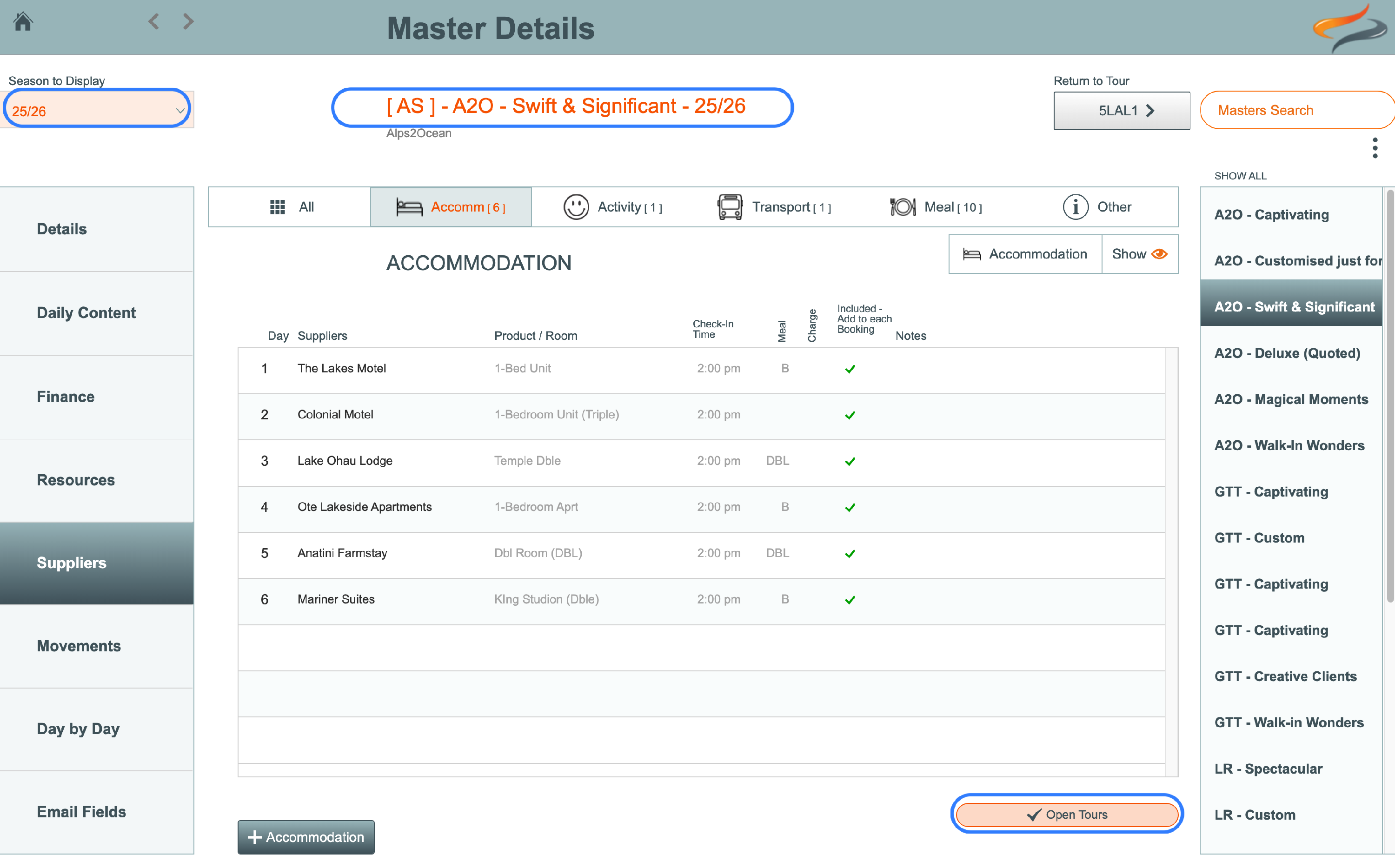From time to time you may need to change a Master mid way through a season, and want to push those changes through to Tours. (for example, a Provider's check in time may change, or their default meal product)