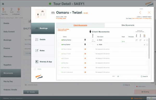 - This takes you to the Bookings | Client Movements tab