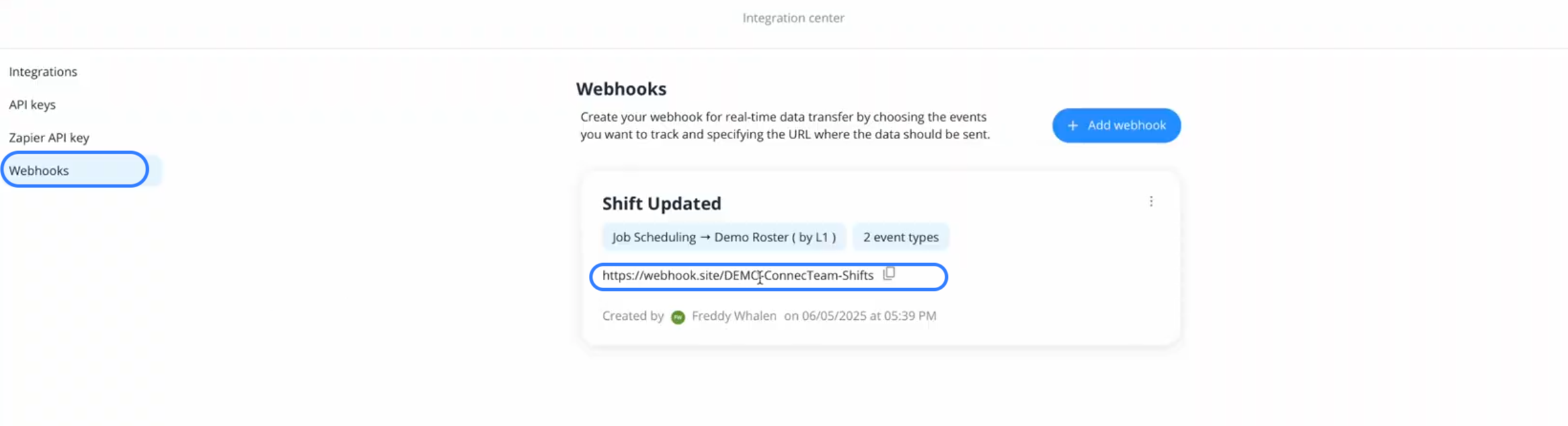 - in the Rostering SchedulerID field, enter the ID number which has been copied from Connecteam