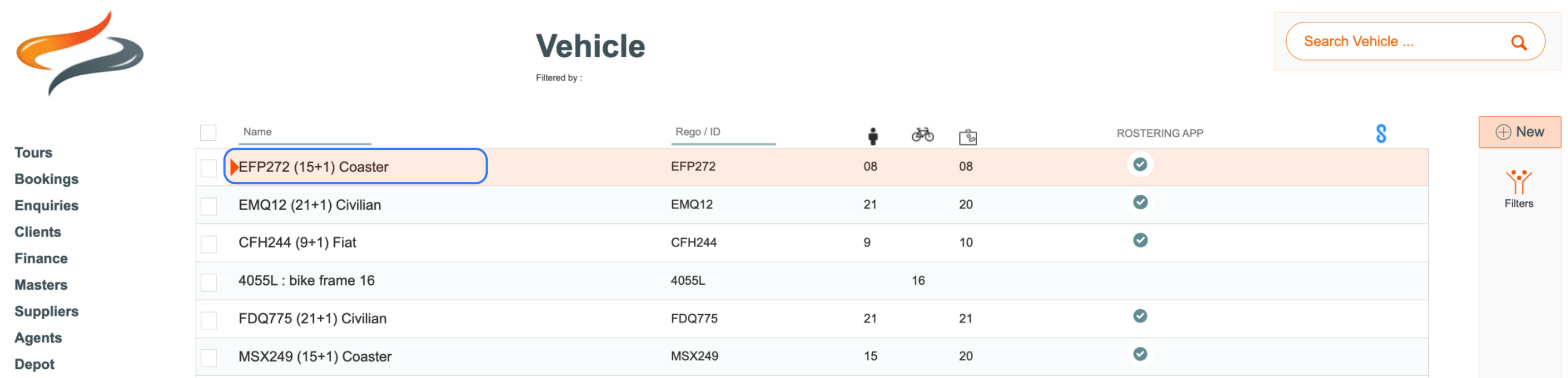 - Search or select a Vehicle from the list