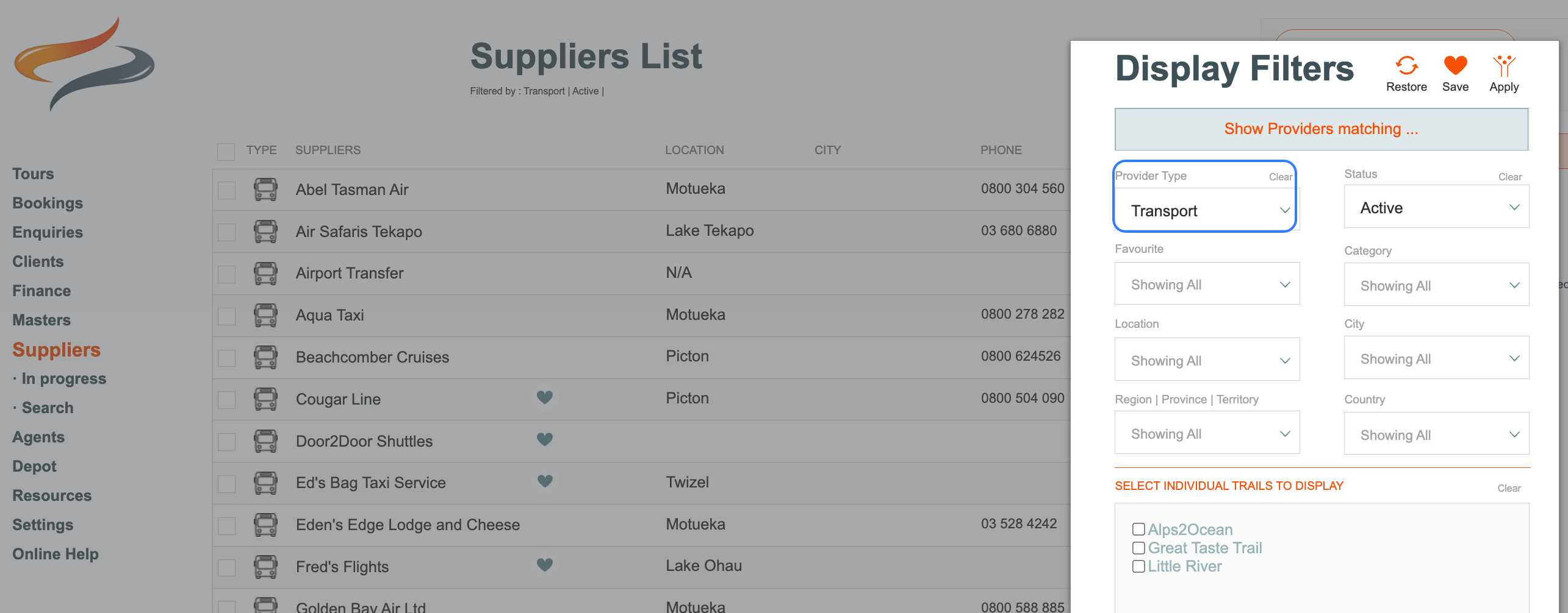 - From the Main Menu | Resources, filter by Transport provider and select a Provider