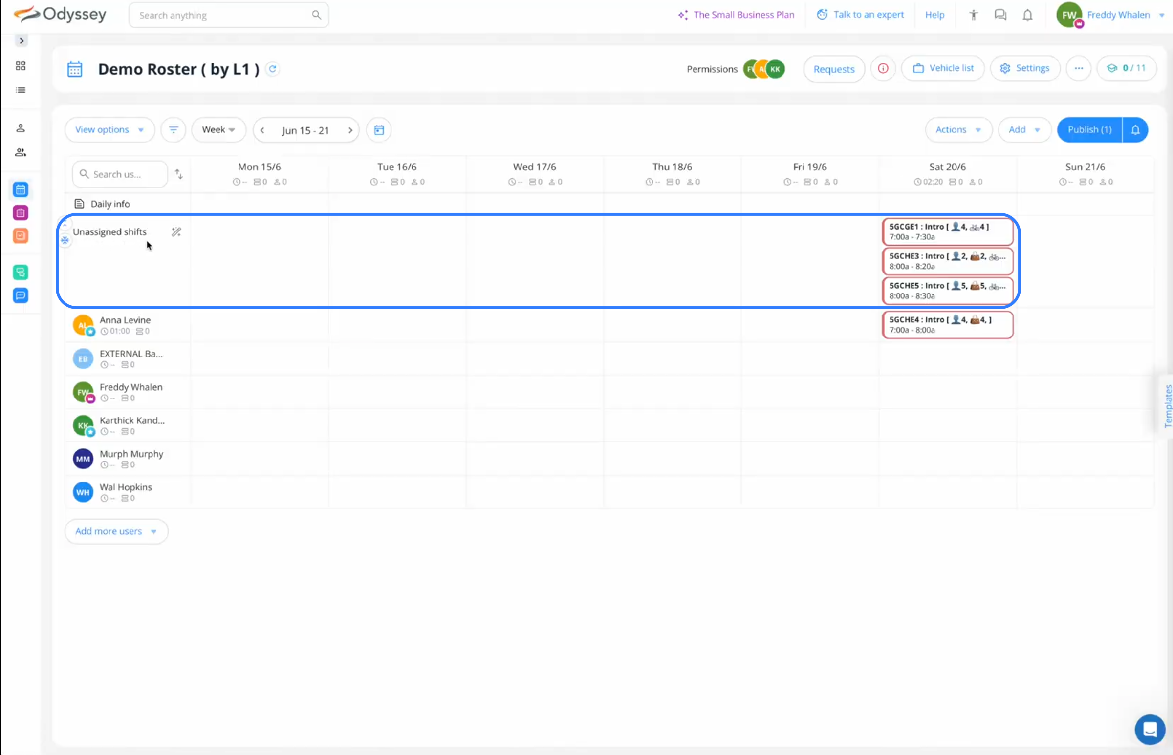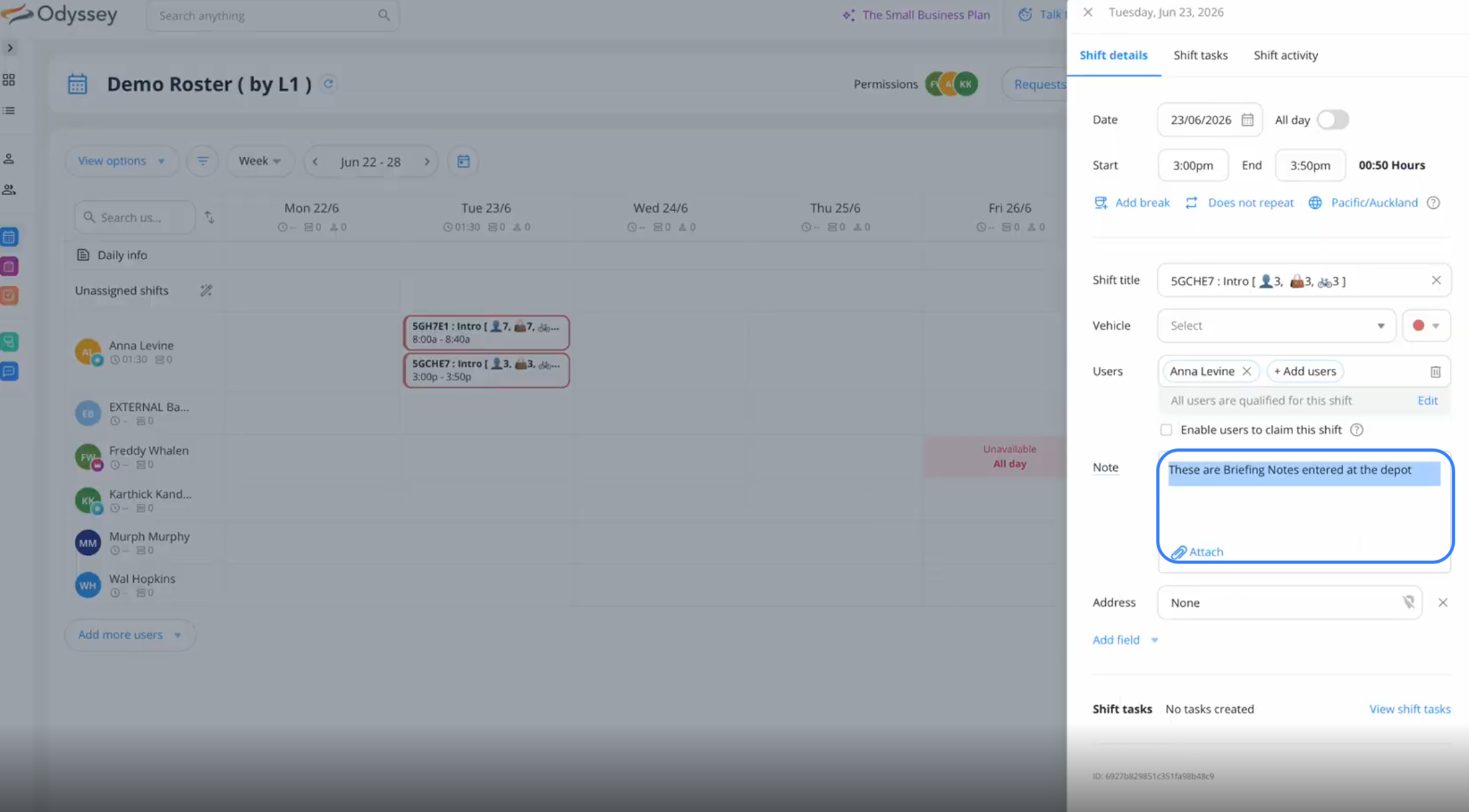 - Any tasks, such as these briefings, which have not been allocated to staff members, are shown under Unassigned Shifts