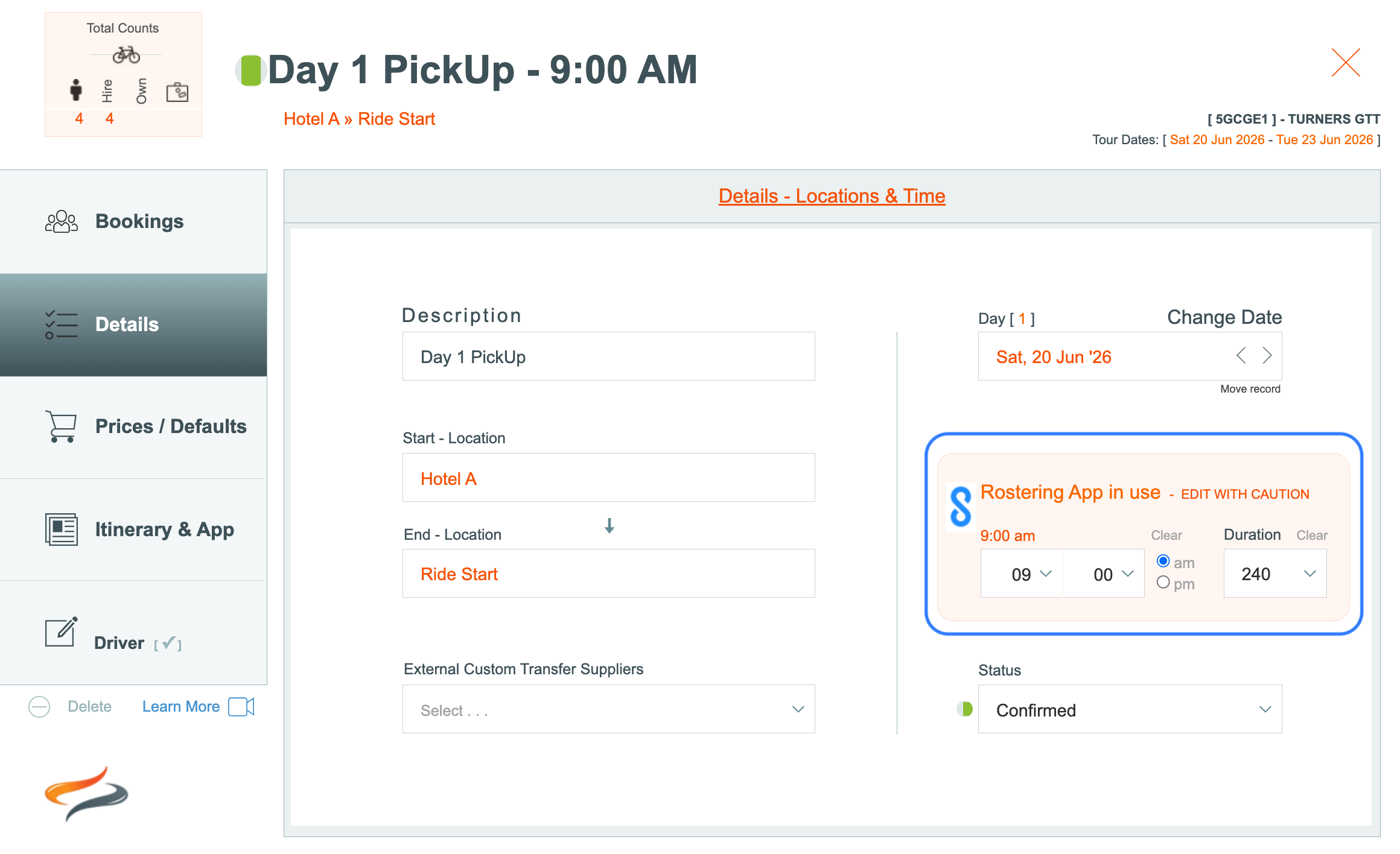 - Any custom transfers which have already been assigned to an external transfer operator can be ignored, as they will manage their own staff rostering. We are only assigning our "own" company's movements to Connecteam