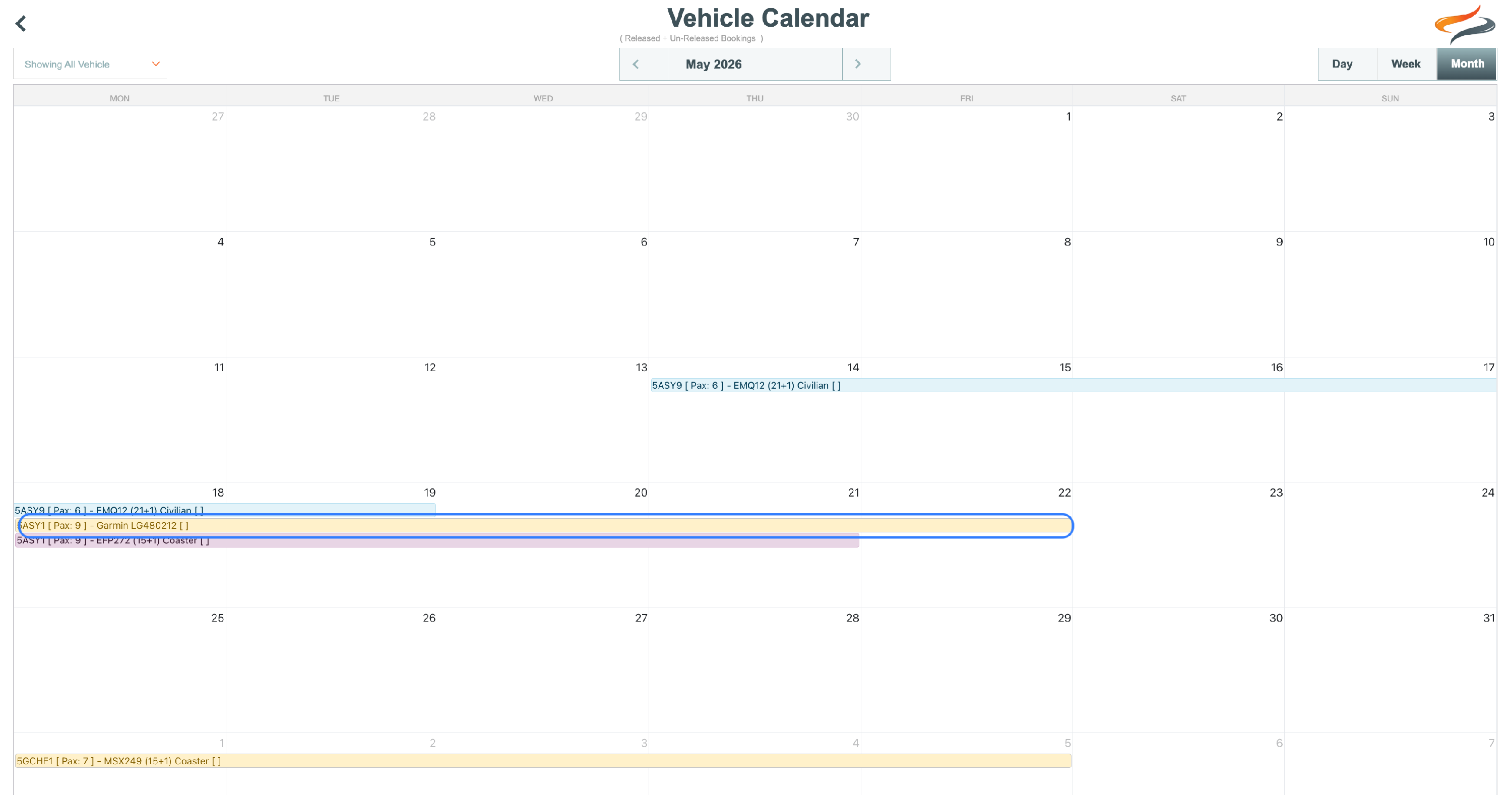 The Garmins are able to be viewed on the Vehicle(Garmin) Calendar
